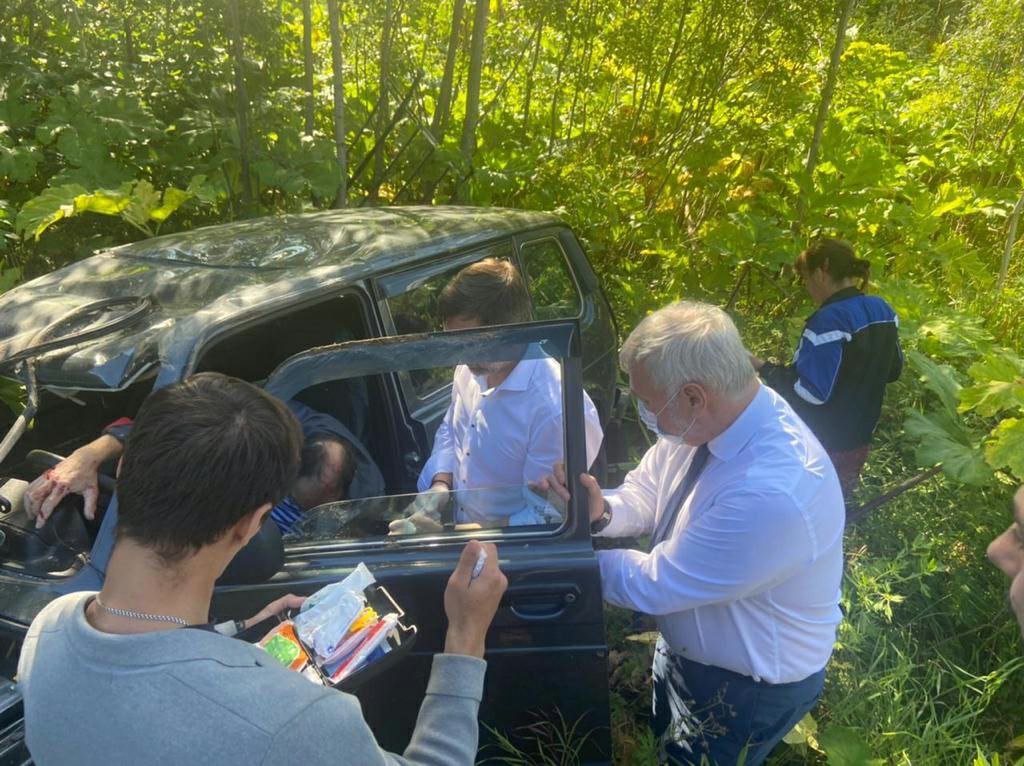 Владимир Уйба с коллегами направились к оврагу для оказания помощи пострадавшему водителю. В силу травм он не мог самостоятельно выбраться из автомобиля. Потом пострадавшего передали медикам.