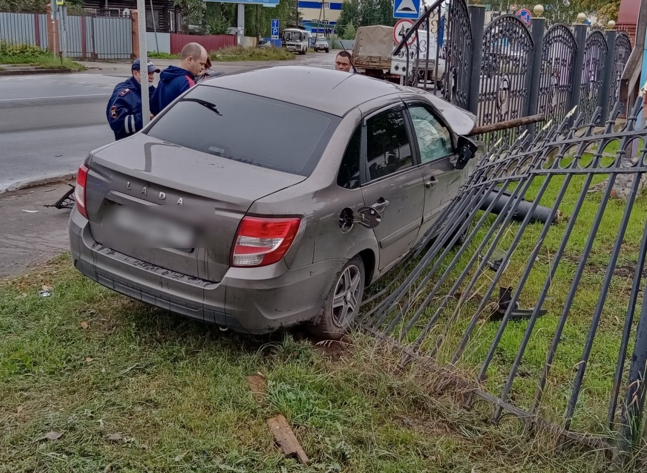 Авария случилась сегодня в 9:13. Мужчина 1988 года рождения, находясь за рулем автомобиля Lada Granta ехал по Заводской улице, около дома № 21 он не справился с управлением, «пролетел» по тротуару и газону и врезался в забор, повалив его часть.