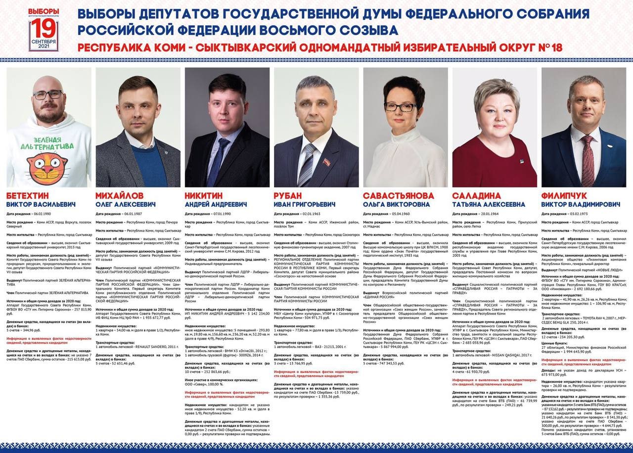 Избирательная комиссия Республики Коми подготовила плакат, на котором разместила всех кандидатов, кто решил пойти по одномандатному округу № 18 - Сыктывкарский в Государственную Думу. Если приглядеться, то вам всем знакомы эти лица и вы уже точно решили за кого отдать свой голос, мы не станем вам кого-то навязывать.