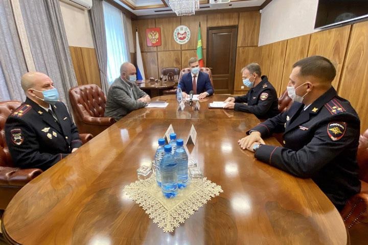 Глава Хакасии Валентин Коновалов сегодня провел встречу с новым заместителем министра внутренних дел по Хакасии Владимиром Веселовым и новым руководителем регионального УГИБДД Александром Тихомировым.