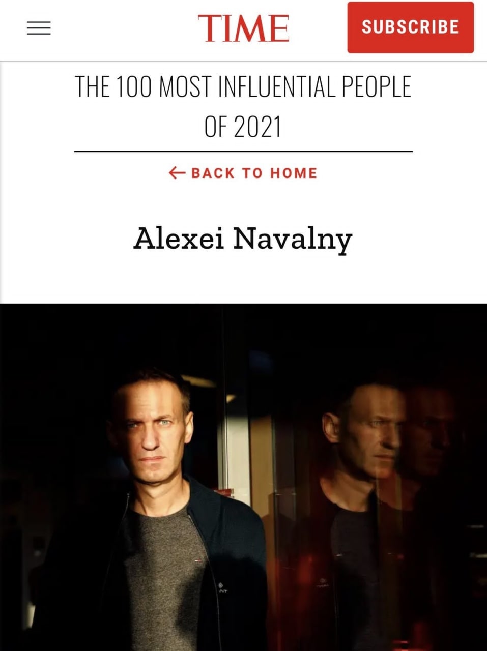 Журнал Time включил Навального в список самых влиятельных людей мира.