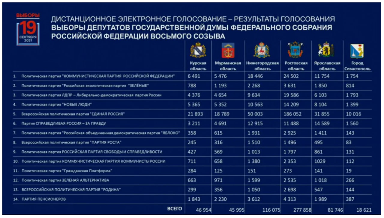 Первые данные по электронному голосованию по России, без Москвы