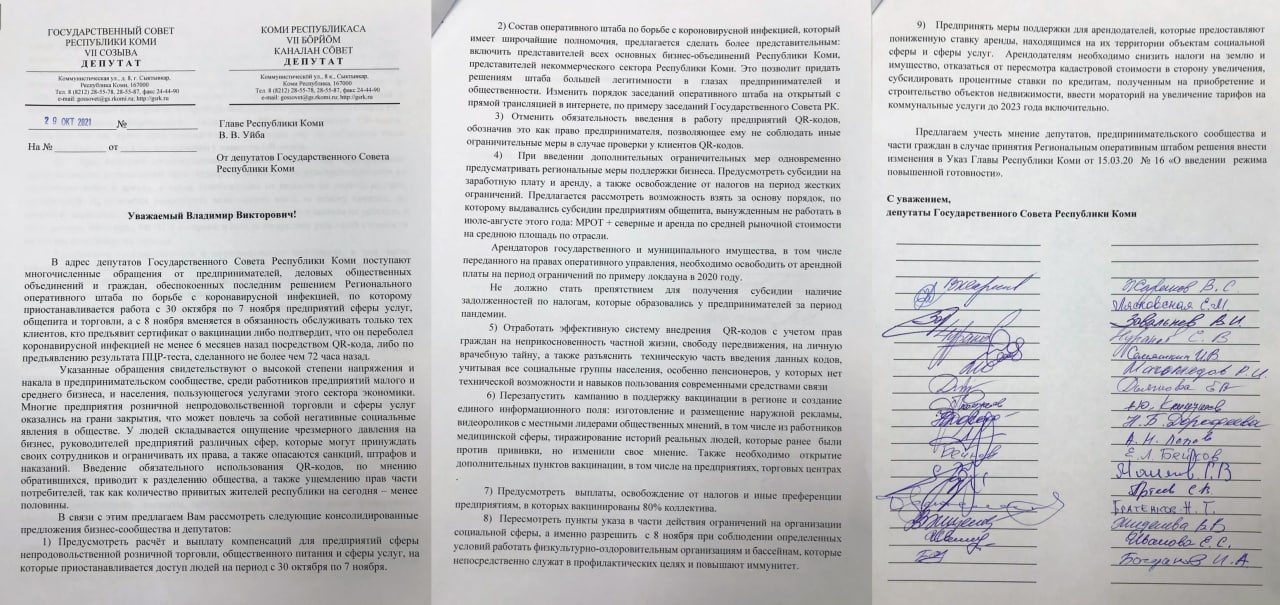 Предприниматели предложили ограничить перечень организаций в Республике Коми, для посещения которых требуется QR-код или отрицательный результат ПЦР-тестирования, перечнем, установленным Правительством России.