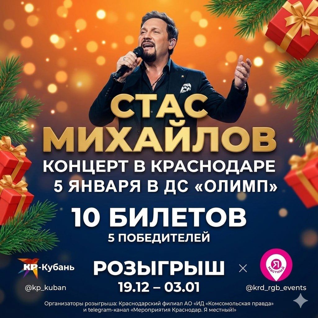 Разыгрываем 10 пригласительных билетов (5 победителей по 2 билета) на большое шоу Стаса Михайлова во Дворце спорта «Олимп» в Краснодаре 5 января!