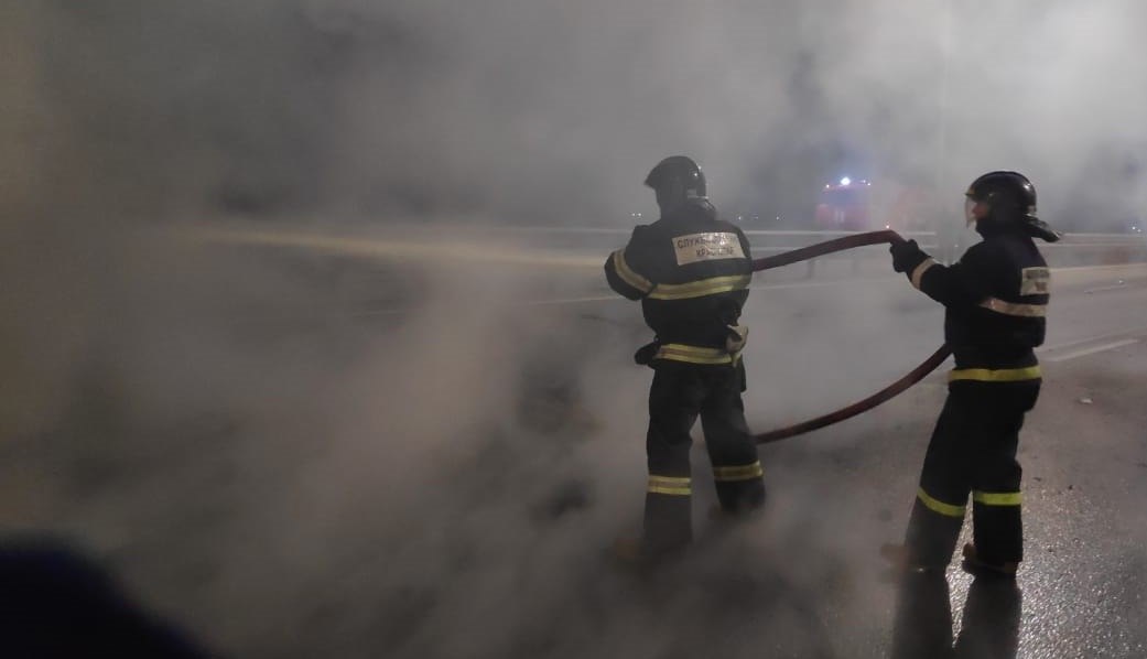 Ещё одно возгорание произошло в результате ДТП. На трассе М-4 «Дон» (1318 км) грузовой автомобиль Volvo опрокинулся на бок и загорелся. Спасатели вместе с пожарным расчётом прибыли на место происшествия и потушили огонь.