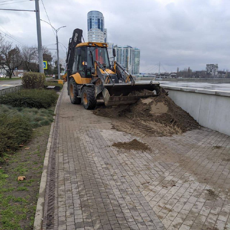 С утра 18 декабря подрядная организация проводила работы на пешеходной зоне набережной на участке между Тургеневским мостом и Затоном.