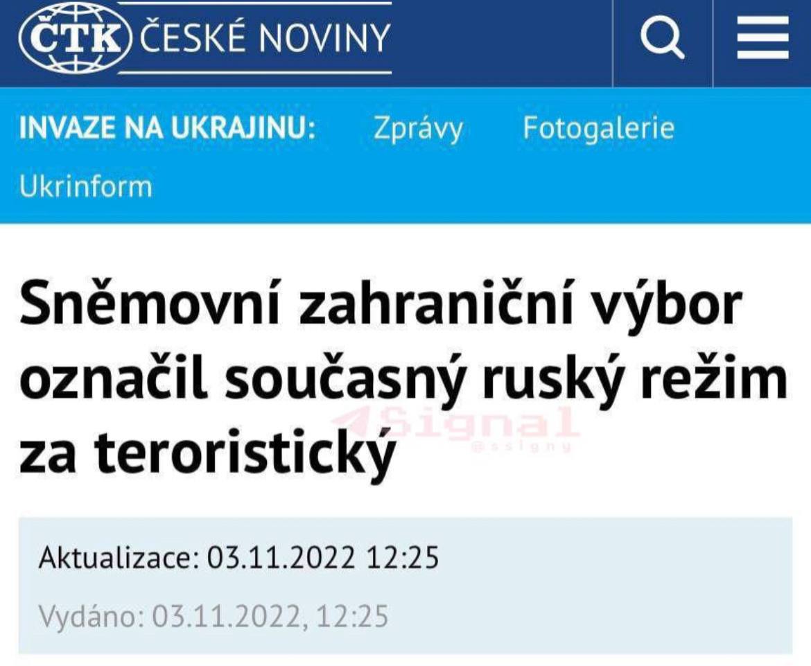 ✔️Чехия признала Россию государством-террористом. Причина - свободное волеизъявление ЛНР, ДНР, Херсонской и Запорожской областей о возвращении в состав исторической Родины - России.