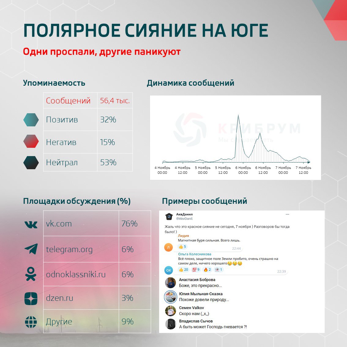 Только в Рунете почти за три дня об аномалии было опубликовано более пятидесяти тысяч сообщений. Из них оказалось 32% позитивных, 15% негативных и 53% нейтральных комментариев.