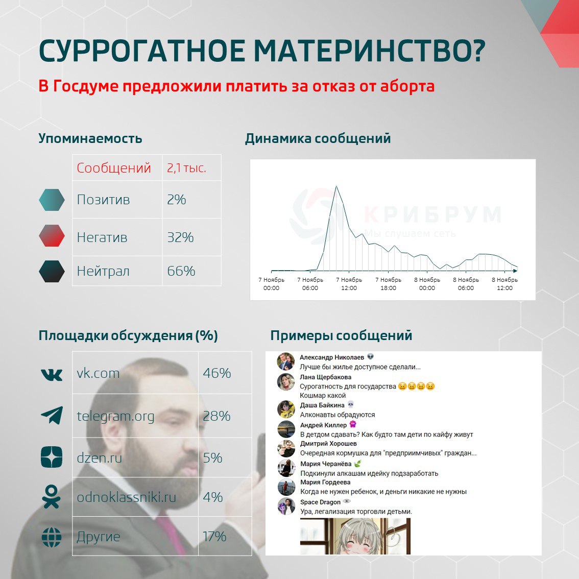 Обсуждение предложения вызвало публикацию более двух тысяч сообщений в Сети почти за пару дней. Тональность комментариев поделилась на 2% позитивных, 32% негативных и 66% нейтральных.