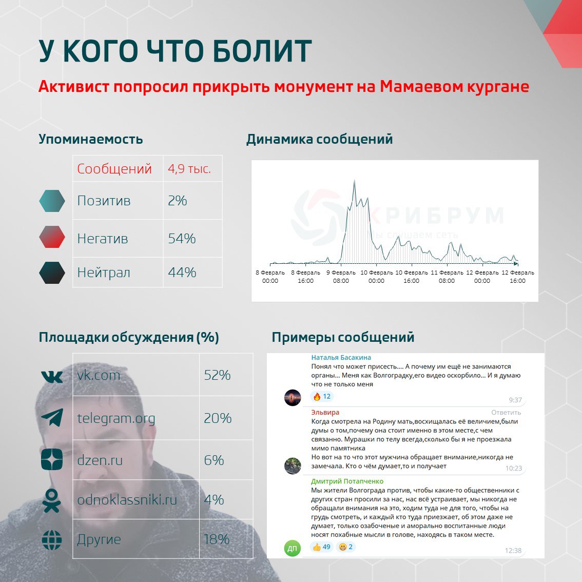8 февраля общественник из Башкортостана Расул Ахияретдинов записал видеообращение к президенту России Владимиру Путину. Он попросил переделать монумент «Родина-мать зовет!» на Мамаевом кургане в Волгограде, прикрыв ей «откровенно торчащие соски».