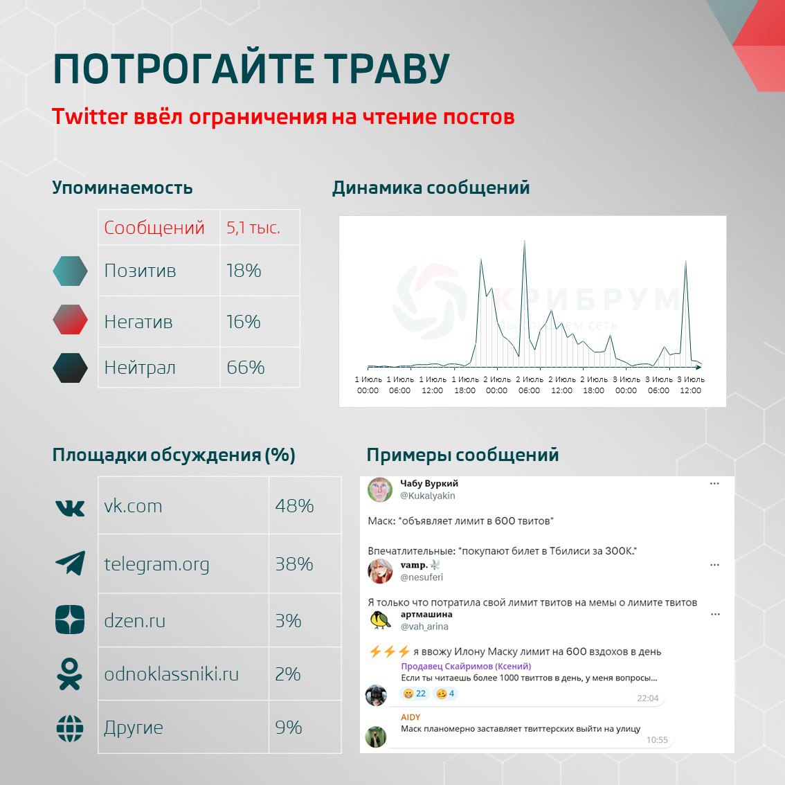 Помимо этого, пользователи других соцсетей посмеиваются над реакцией обитателей Twitter. Комментаторы недоумевают, каким образом людям может не хватить дневного лимита в 500 твитов. Авторы подобных комментариев как в серьез, так и в шутку призывают таких пользователей почаще выходить на улицу, нередко умещая это в лаконичное «потрогать траву» (Touch Grass - «потрогать траву» - распространенное английское выражение, обозначающее «выйти из сети»).
