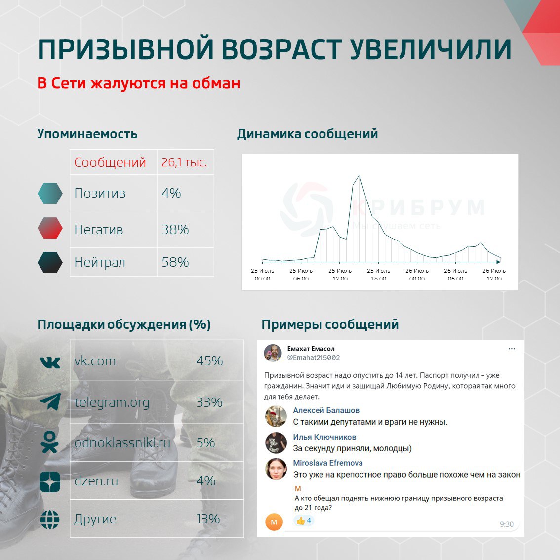 Большинство комментаторов выразили свое разочарование по поводу несбывшихся обещаний сдвинуть призывной возраст, а не увеличить его. Авторы таких публикаций считают, что депутаты откровенно обманули граждан, обсуждая возможности, открывающиеся для молодых людей 18-20 лет, которые не будут входить в число призывников.