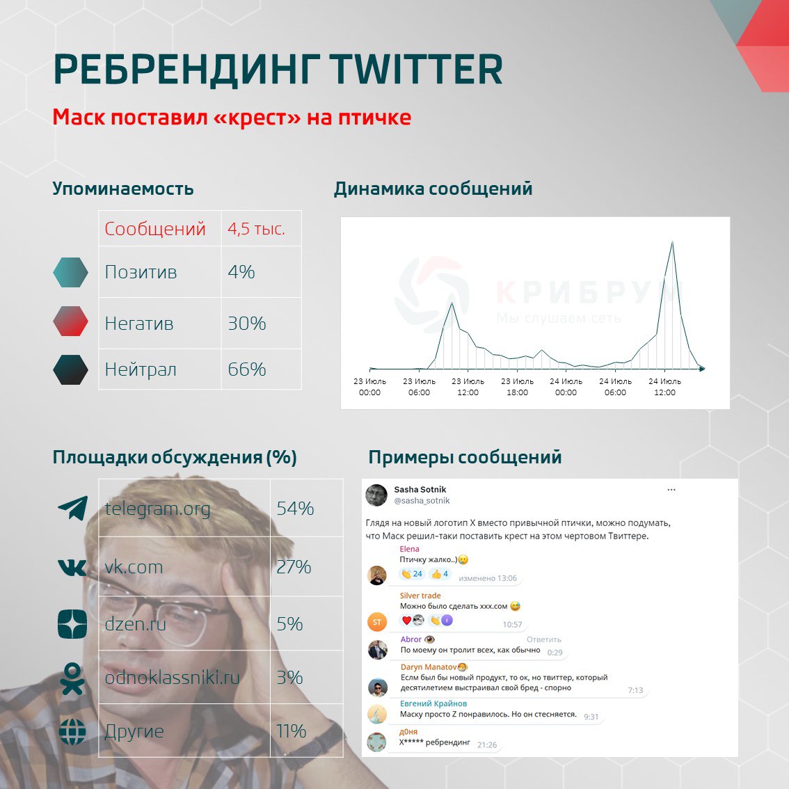 Многие не оценили отказ от знаменитой «птички». Некоторые даже задались вопросом: что Маск собирается делать со словом «твитнуть», борясь со птичьим прошлым соцсети (tweet – щебетать, чирикать). Также комментаторы нередко постили стопкадр или видеофрагмент со знаменитой цитатой «птичку жалко» из фильма «Кавказская пленница». Пользователи, обсуждая нововведения, также выражали надежду, что Маск одумается и вернет всеми любимую пташку.