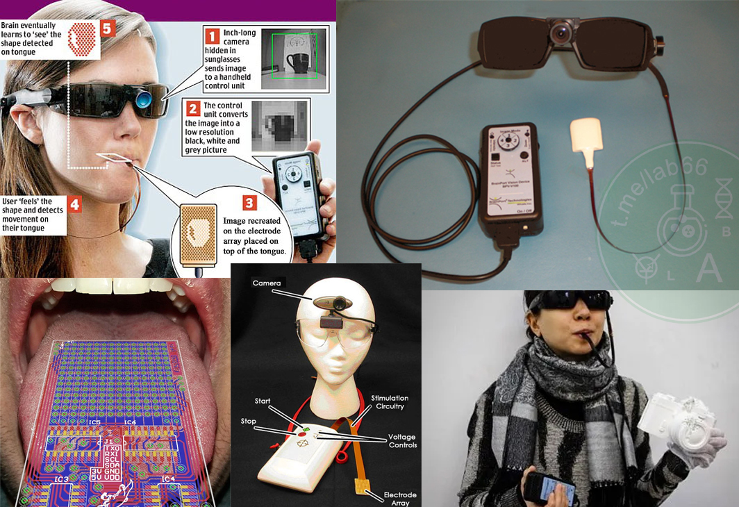 В чем ее суть. В том, что наш язык это уникальный орган, имеющий на передней поверхности участок кожи с максимальной плотностью рецепторов и нервных окончаний тройничного и лицевого нервов. И стимулируя этот участок можно передавать в мозг любую информацию. И мозг ее интерпретирует правильно. В качестве реализации используются одноименные приборы BrainPort. Если кратко: во рту располагается решетка электродов, на которую выводится сигнал с камеры (двухмерная картинка). Электрический сигнал ощущается языком и передаётся в мозг через тройничный нерв. Пользователи быстро адаптируются и не требуется сложной, рискованной и дорогостоящей операции. По поверхностным прикидкам сделать такой транслингвальный контроллер/электрод вообще не составит труда. Единственный минус, который виден сразу — приходится вынимать электрод изо рта для разговора, т.е. опять слепнуть.