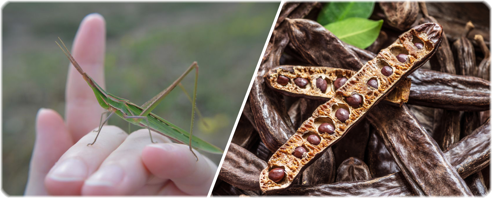 На ладно бы драгоценности. Но до сих пор во многих странах Средиземноморского бассейна рожковое дерево считается «последним источником человеческой пищи в тяжелые времена». Плюс именно этими «рожками» питался парень из притчи о блудном сыне (Лк 15:16). Так что в случае библейских толкований перевес скорее всего не на стороне продуктовых насекомых (плюс высохшие стручки весьма похожи на сушеную саранчу что подталкивает к мысли о подмене понятий толмачами-переводчиками). Для понимания на фото под заметкой та самая библейская (?) акрида обыкновенная против стручков рожкового дерева. В общем, как часто бывает, недостаточно вводной информации (слова на арамейском) чтобы сказать точно...