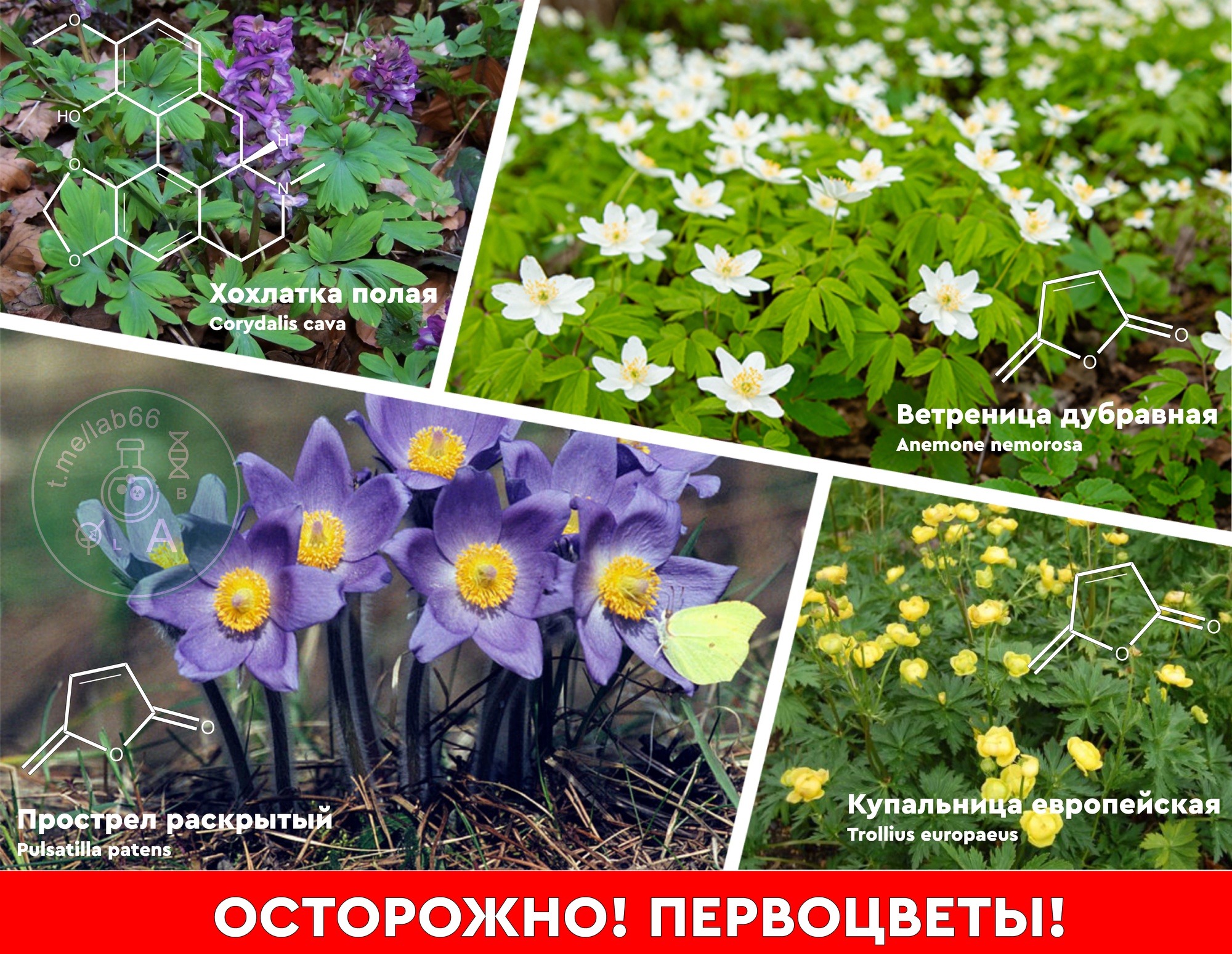 В общем в следующий раз, когда захочется пойти добывать краснокнижные первоцветы или покупать их на стихийных рынках, подумайте, а оно вам точно надо? Чего больше не хватает в жизни: фитодерматоза от протоанемонина, или каталепсии от бульбокапнина?