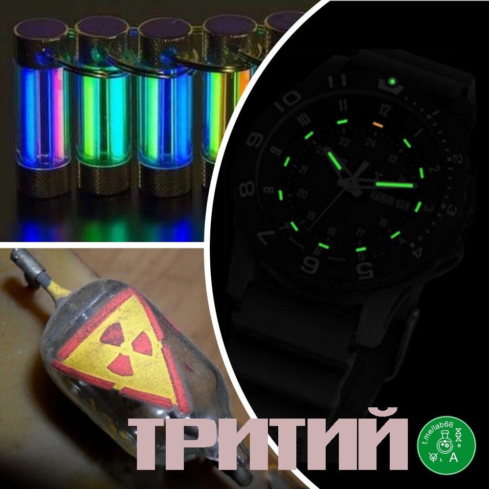 Что такое тритий? Тритий это изотоп водорода ³H, представляет собой радионуклид с периодом полураспада 12,32 года, β-излучатель средней энергии, который распадается до гелия-3 и выделяет электрон с энергией 18,6 кэВ (в воздухе пролетает около 6 мм, через верхний слой кожи она скорее всего пройти не сможет). В обычной жизни этот изотоп раньше можно было встретить в радиолампах-тиратронах, например типа ТХ11Г (как замена прометию-147 и никелю-63) иди разрядниках вроде Р-26. Сейчас тритий это некоторые часы с подсветкой циферблата, типа Traser P6600 Type 6 MIL-G, да китайские светящиеся брелки с aliexpress или от местных мастеров (см. zerglabs).