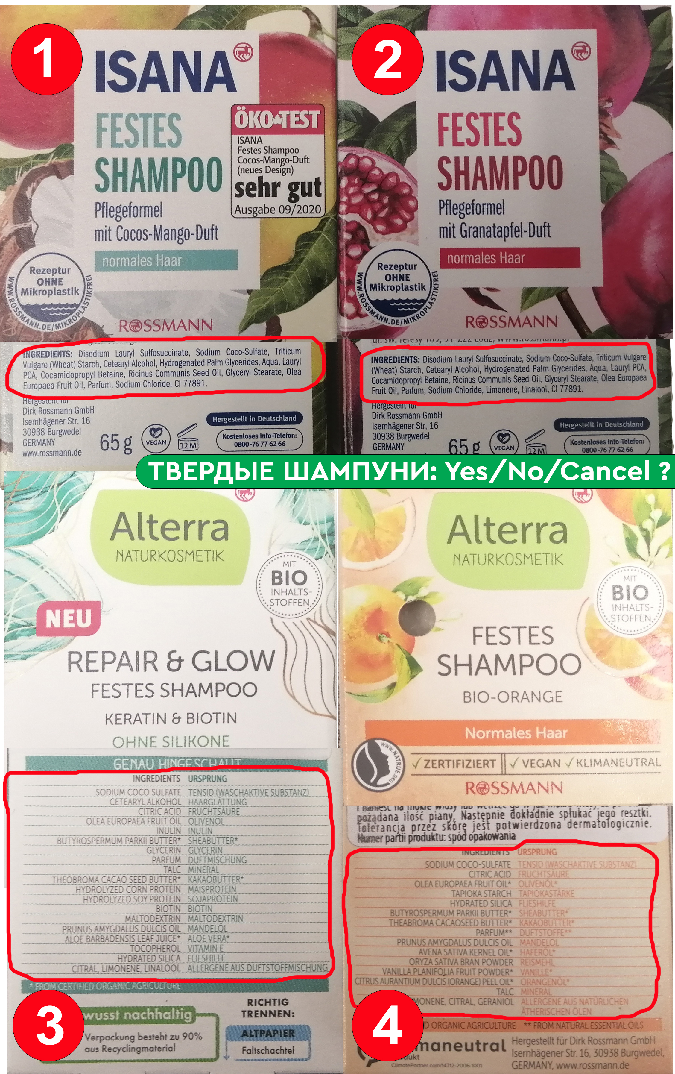 Во-первых все же есть сульфатные твердые шампуни, хотя производители пошли на ухищрения и уже не указывают банальные "лаурилсульфат натрия. Пишут кокосульфат натрия. Но это одно и то же вещество. Хотя в теории, загустить до состояния бруска можно практически любой ПАВ. Во-вторых львиную долю состава занимают различные органические масла. Я не вижу особого функционального смысла в этом, поэтому разбирать детально не стану, все же шампунь, а не пищевой продукт.