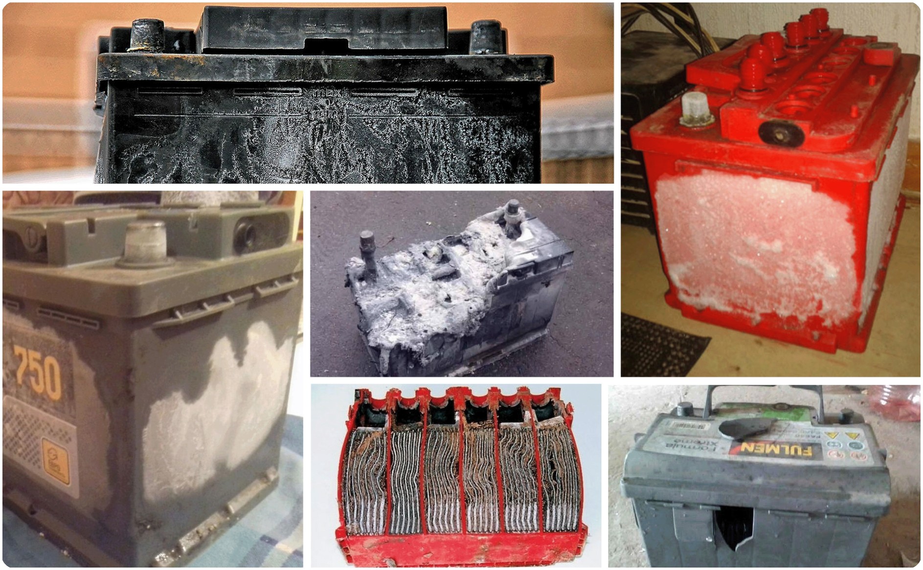 Может так случится, что утеплятся уже поздно. Признаки замерзшей батареи - это вздутые стенки корпуса и слой инея. При промерзании батареи могут деформироваться пластины и сепаратор, появиться трещины, поэтому такой аккумулятор нельзя сразу же подключать к зарядке. Следует извлечь аккумулятор, осмотреть его на наличие трещин и других повреждений, затем поместить в эмалированную посуду и подождать, пока лед растает, а корпус вернется к нормальной форме. Если серьезных деформаций не обнаружено - батарею можно заряжать. Если на корпусе есть трещины и потеки электролита - работать ТОЛЬКО в перчатках!!!