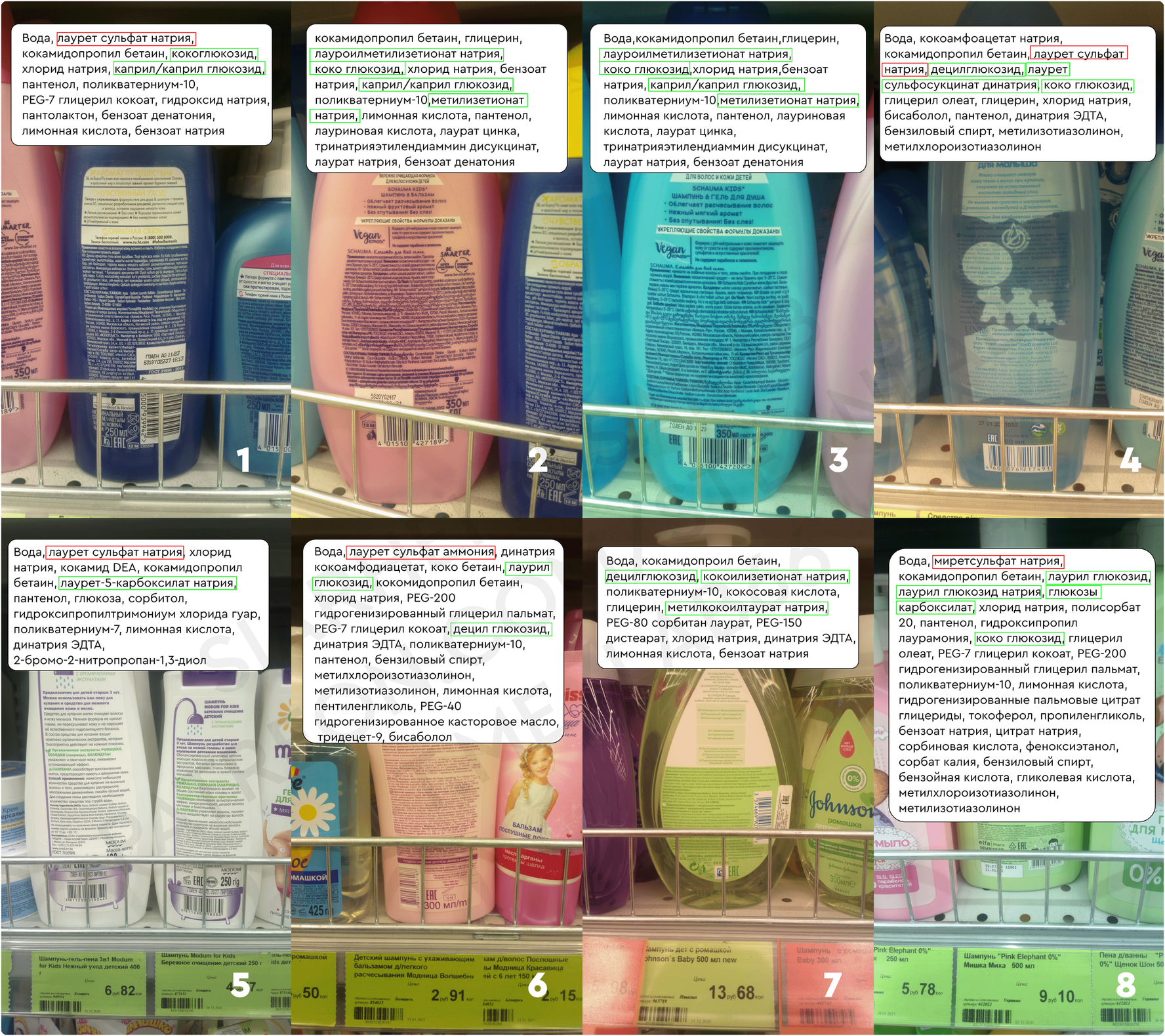 Здесь уж я не удержался, сфотографировал ассортимент отдела детских шампуней/мыл одного очень крупного гипермаркета Минска, а потом этот ассортимент кратко проанализировал. На картинке ниже зелеными рамками обведены мягкие ПАВ, о которых я упоминал в заметке. Красные рамки = условное табу (~будут вызывать раздражение слизистой и оказывать все эффекты ПАВ на белки кожи и т.п.) и лучше этих веществ избегать. Кожа все-таки не казённая :) Кстати, кое-где виднеются цены, чтобы было проще ориентироваться в них зарубежным читателям, напоминаю, 1 BYN = 0.39 USD = 0.32 EUR = 29.14 RUR = 11.14 UAH = 0,000013 BTC 😁