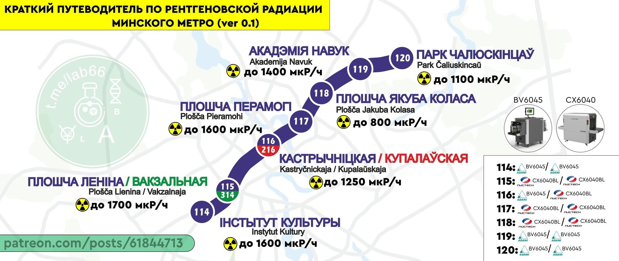 На фото: карта излучения рентгеновских установок центральной части минского метро. если в багаже есть что-то радиочувствительное - старайтесь проходить через интраскопы с меньшим уровнем излучения.