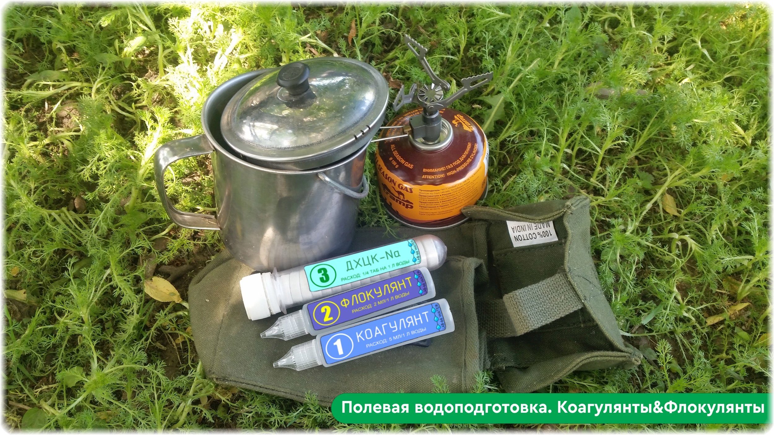На фото: такой вот "водный набор" ездит в моем рюкзаке. Безотказно работает с любой водой из поверхностных источников (болотная, луговая, речная etc)