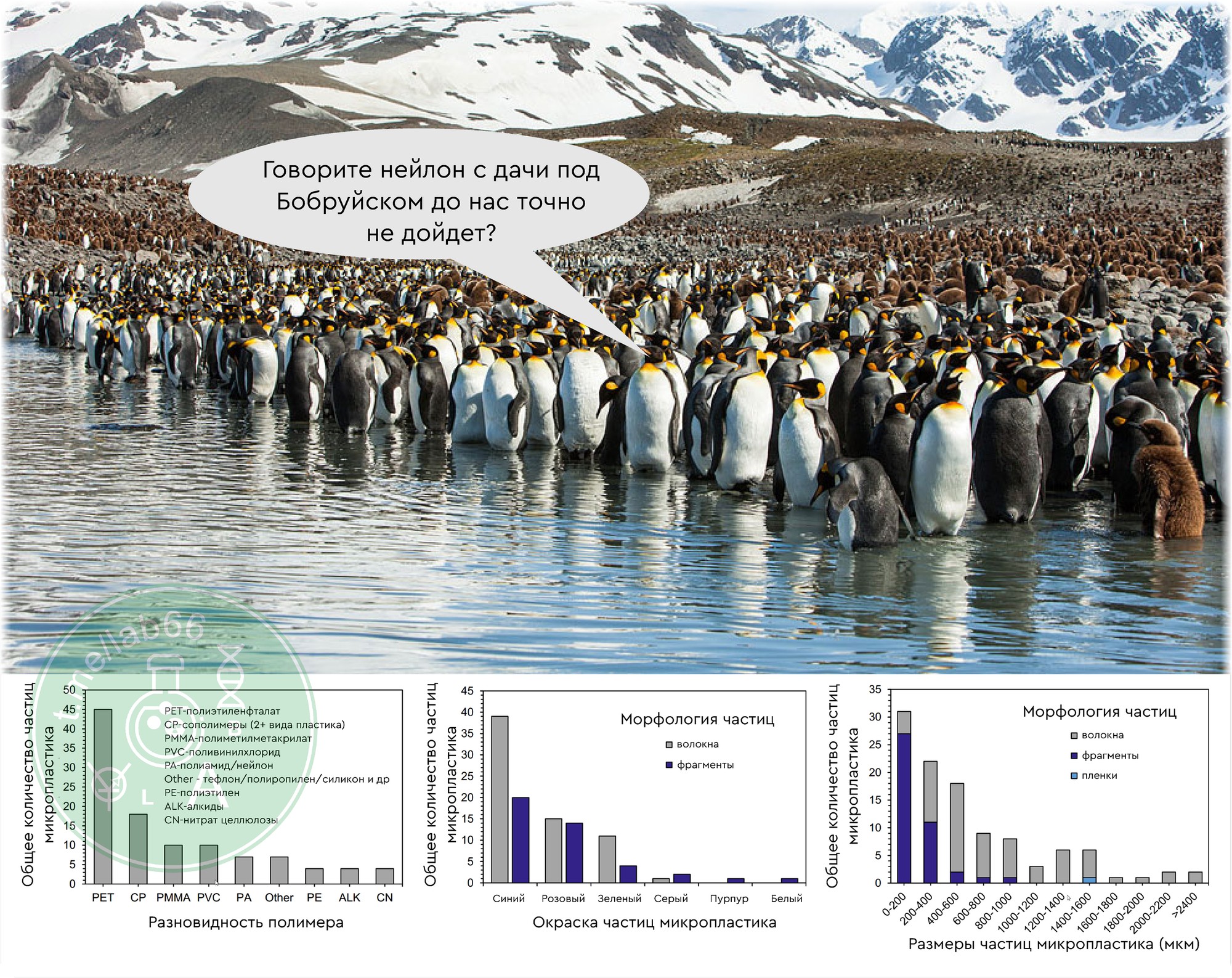 В ней ученые из Кентерберийского университета (Новая Зеландия) собрали образцы снега на шельфовом леднике Росса в Антарктиде в конце 2019 года. Затем образцы анализировались с помощью оптической микроскопии (стереомикроскоп Leica MZ125) и микро-ИК-спектроскопии с Фурье преобразованиями (µFTIR@Hyperion 2000). Оказалось что микропластик присутствует ВЕЗДЕ (во всех образцах). Преобладающая морфология - микроволокна. Содержание частиц было примерно одинаковым, порядка 30 частиц на литр талой воды. Больше всего было "бутылочного" PET (41%), затем комбинации из двух и более полимеров (17%), по 9% - метилметакрилат и ПВХ, 6% - нейлон и сумма полипропилена/тефлона/силикона/поливинилидена, по 4% - полиэтилен, алкиды и нитрат целлюлозы. Размеры частиц варьировались от 50 до 3510 мкм (средний размер ~606 мкм). Большая часть частиц (81%) была размером < 1000 мкм, 28% — в диапазоне 0–200 мкм.