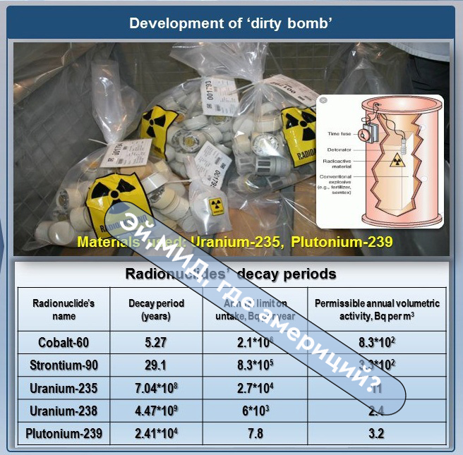 p.s. Отмечу здесь же, что RADkit-ы (→ссылка←) большей частью ориентированы как раз-таки на ликвидацию последствий работы радиологического ↓, а не ядерного ↑ оружия.