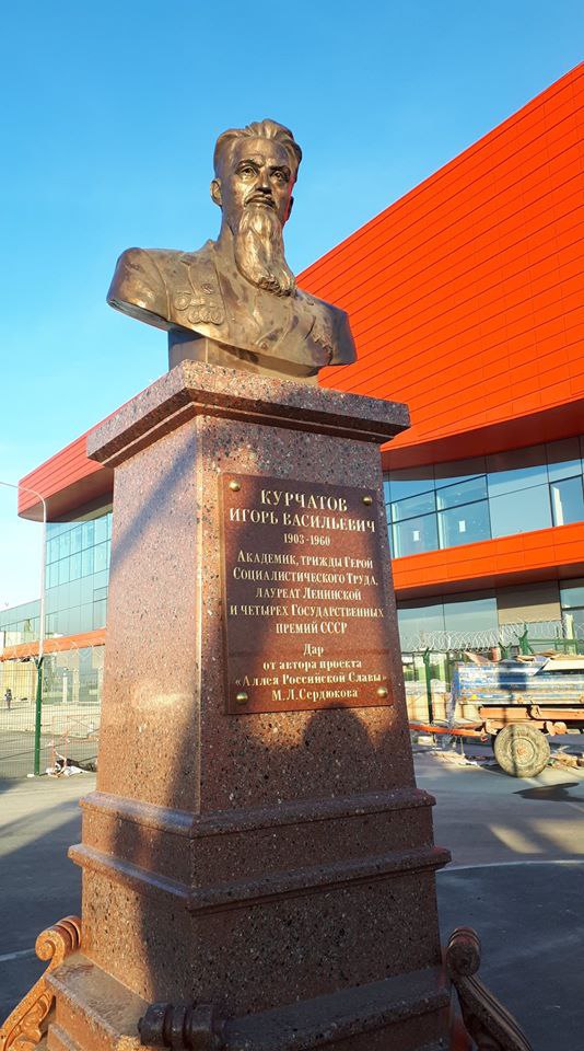 Сегодня был установлен бюст Игоря Курчатова на привокзальной площади нового терминала Международного аэропорта Челябинск. Не так давно, напомним, челябинский аэропорт был назван именем Курчатова.