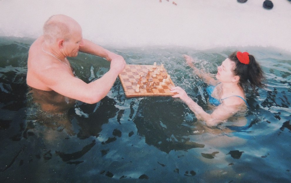 “Мы несколько лет подряд играли по выходным в шахматы в проруби, - рассказала она. - Так хорошо, освежает, мысли прямо светлые делаются. Но вот что я поняла: многие неправильно делают. Сначала находятся в ледяной воде, а голова без погружения, снаружи, сухая. Тяжело это, обносит её. Нужно полностью окунуться, с головой, потом вынырнуть — и играть, сколько хочешь”.