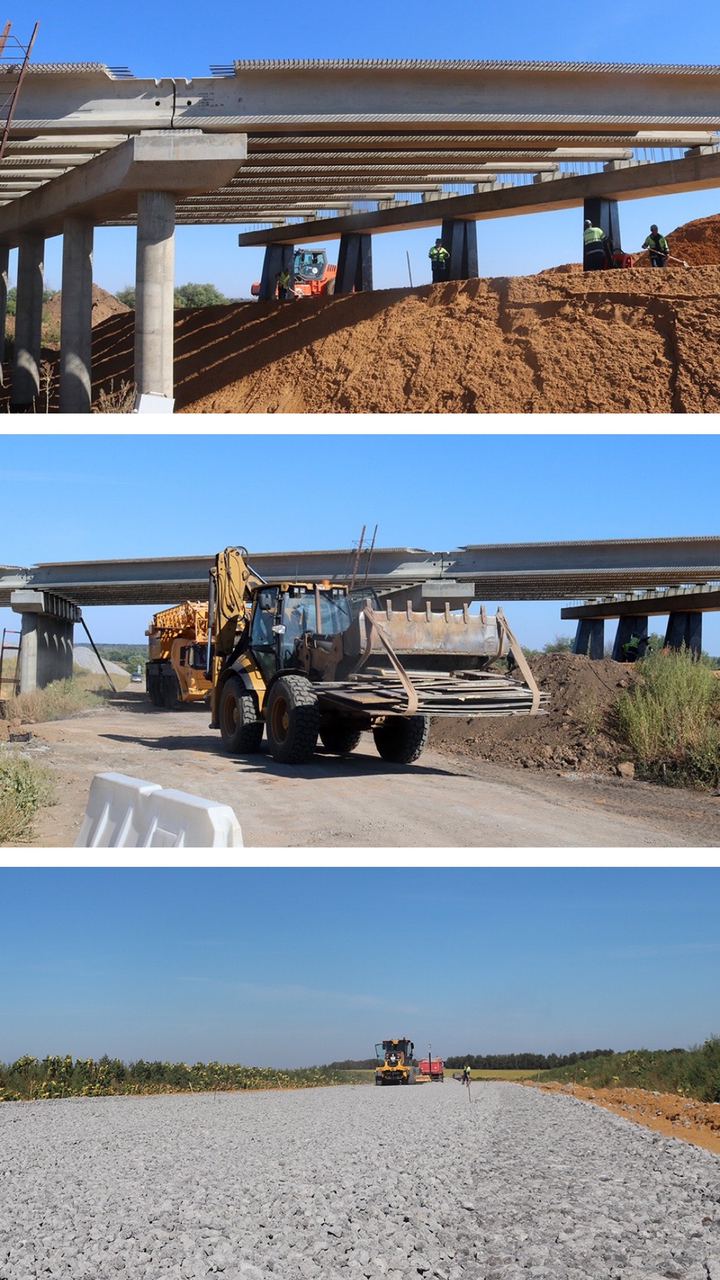 Смонтированы пролётные конструкции моста на участке в районе поворота на Ярлуково. Здесь появится дорожная развязка в форме петли, сейчас идёт устройство насыпи для подъездов к мосту. Его длина составит 60 метров, высота – шесть метров.