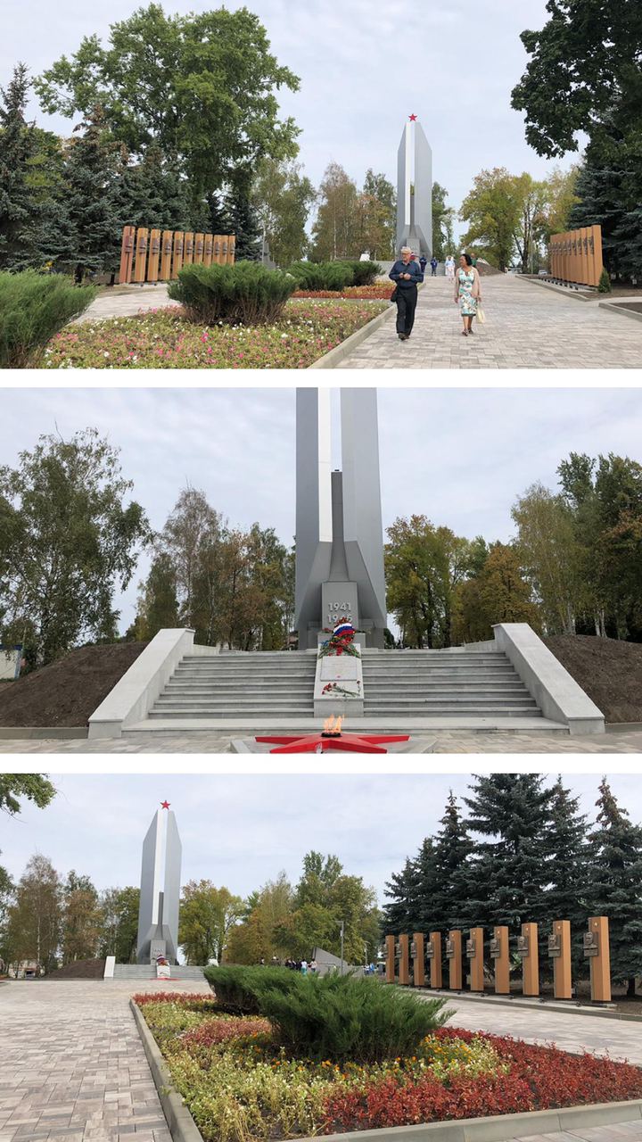 Прогулочную зону вымостили тротуарной плиткой, провели новое освещение, системы музыкальной трансляции и речевого оповещения. Полностью преобразился центральный обелиск – монумент Победы: он стал выше, с декоративной подсветкой. Обновили у обелиска Вечный огонь и списки всех участников Великой Отечественной войны.