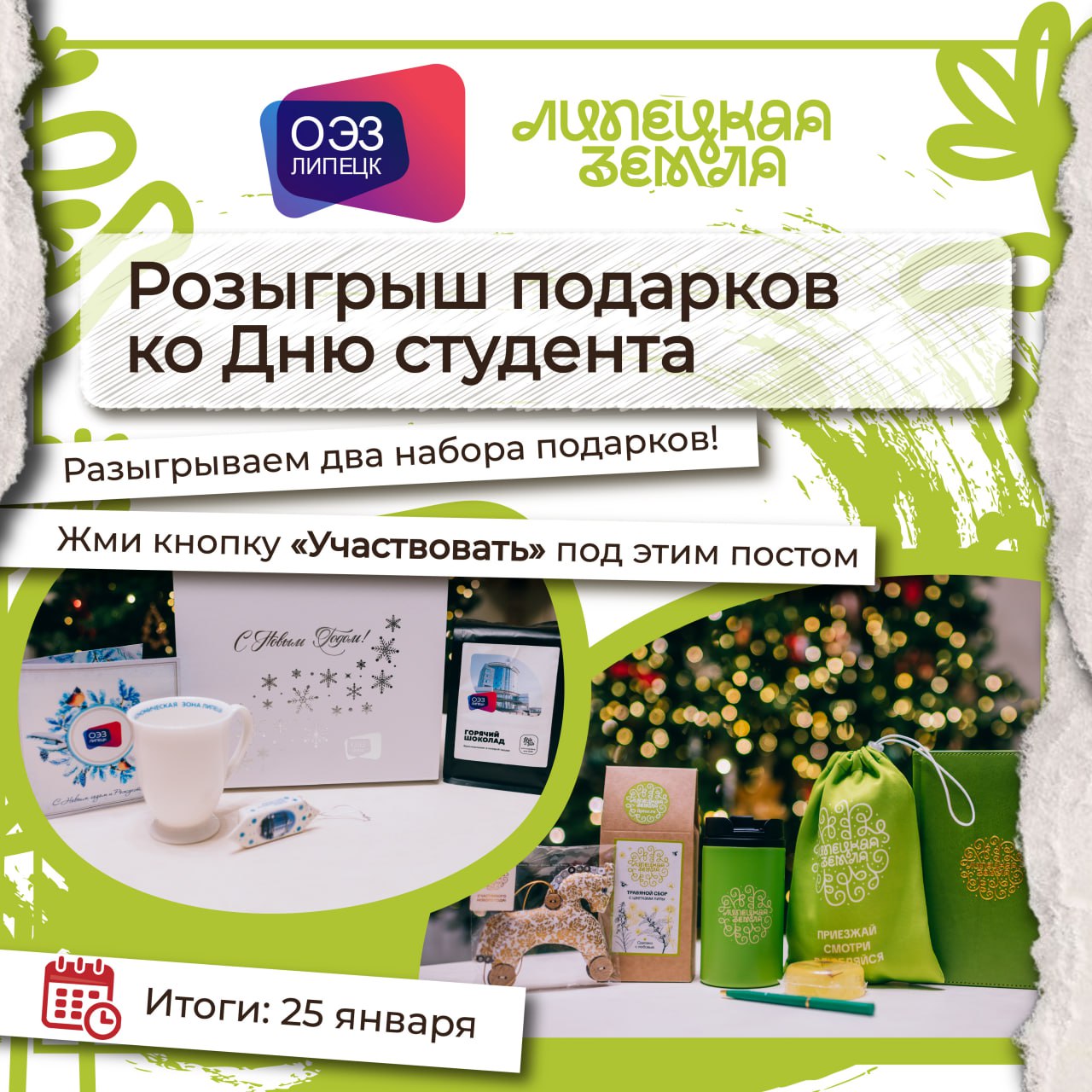 Липецкая Земля pinned «🎉 СОВМЕСТНЫЙ РОЗЫГРЫШ ПОДАРКОВ КО ДНЮ СТУДЕНТА! ОЭЗ «Липецк» и Центр туризма «Липецкая земля» подготовили для вас суперпризы! Всего будет 2 победителя — и каждый получит свой особенный подарок. 🎁 Что можно выиграть? ➡️1 счастливчик получит подарок от ОЭЗ…»