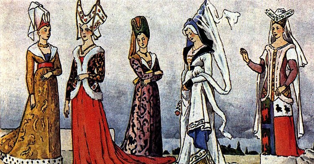 В современной моде условия диктуют западные модельеры и дизайнеры. В эпоху крестовых походов все было совершенно по-другому: рыцари-тамплиеры с Востока доставляли своим дамам сердца информацию о новых фасонах, узорах, головных уборах, которую девушки потом активно использовали для своих нарядов.