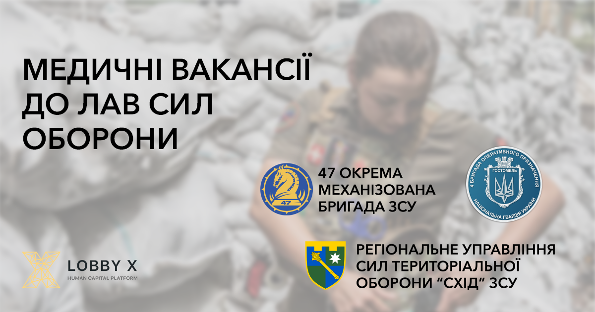 CV надсилайте на apply@thelobbyx.com з темою листа "Фельдшер до РУ ТрО Схід"