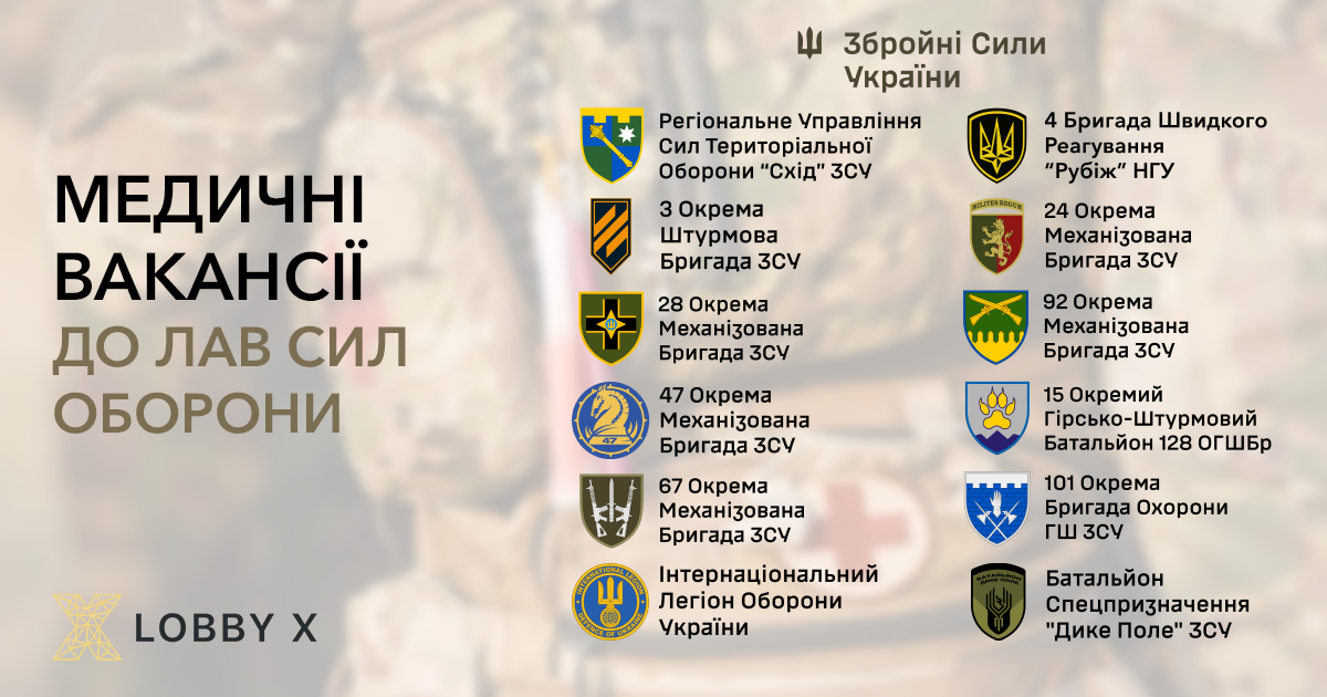 Тож пропонуємо переглянути актуальну добірку медичних вакансій до українського війська: