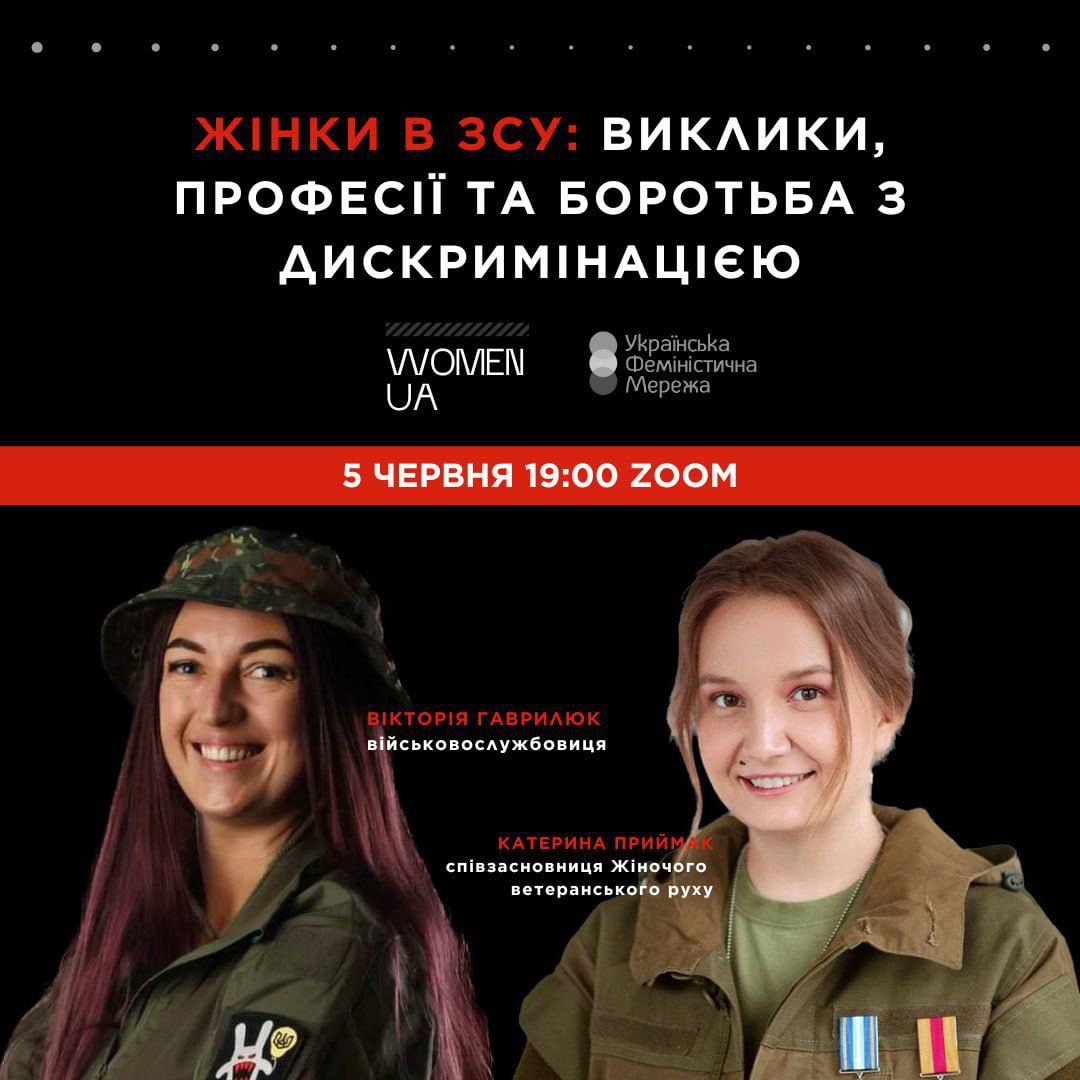 Ініціатива підтримки українських жінок під час війни WOMEN UA організовує онлайн-зустріч на тему “Жінки в ЗСУ: виклики, професії та боротьба з дискримінацією”.