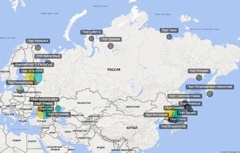 Доли по бассейнам на январь 2026 в общем контейнерообороте всех морских портов РФ распределились так:
