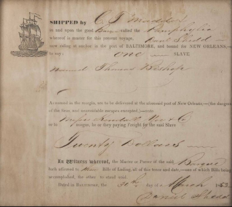 Судно Pamphylia, упомянутое в этом коносаменте, было захвачено британцами в 1859 году при попытке вывоза пленников из Африки в США