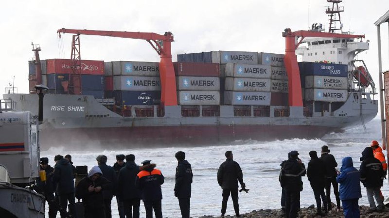 По его словам, с борта уже сняты 122 контейнера с грузами. Всего их там 199. Работы по выгрузке задерживаются из-за волнений на море