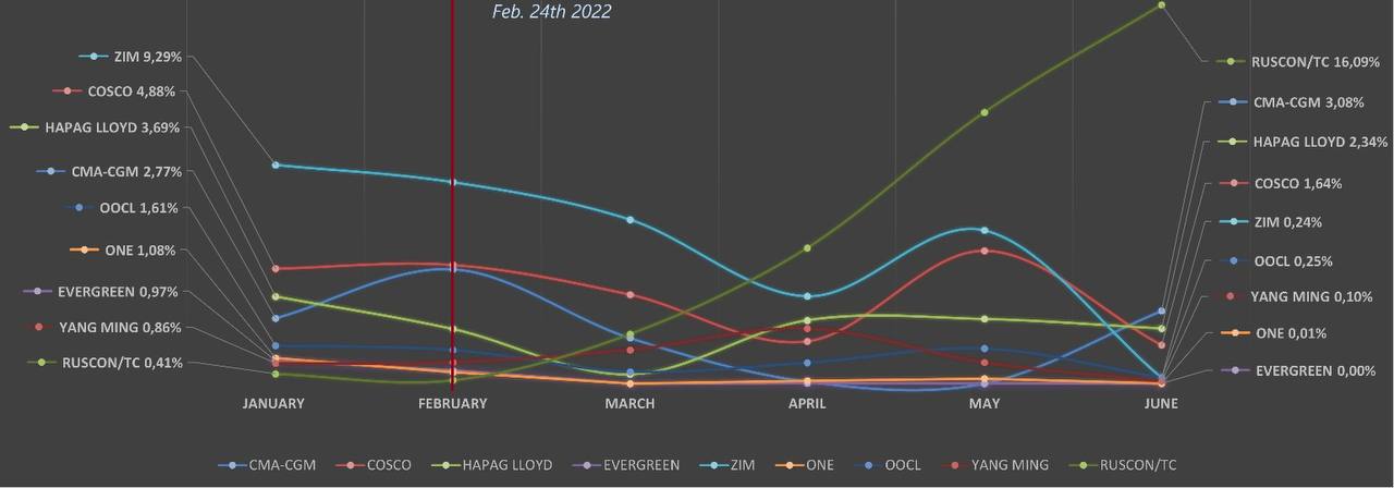 Сами результаты показывают, что трафик контейнеров снизился, но не намного, а некоторые перевозчики увеличивают свою долю рынка