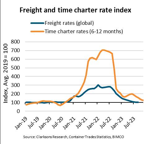 • следующий год будет рынком покупателя морских грузов, и грузоотправители смогут добиться значительного снижения ставок в следующем году, но такого большого сокращения, как в 2023 не будет