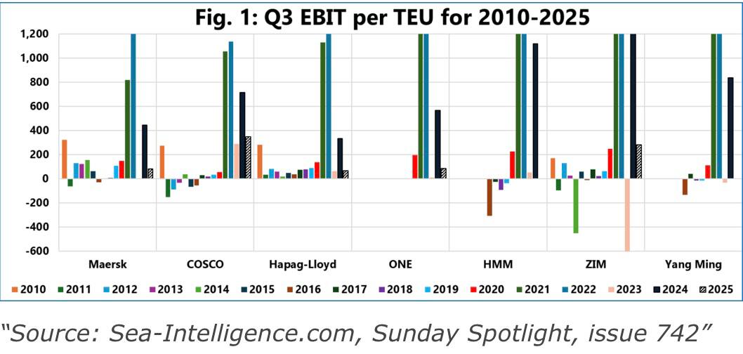Аналитики Sea-Intelligence разобрали финансовые итоги крупнейших судоходных линий по итогам 3 квартала 2025 года