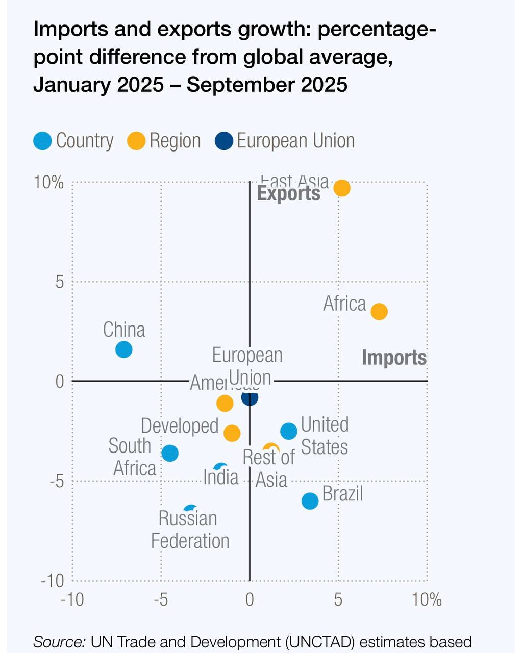 Восточная Азия сохраняет статус лидера: за год экспорт региона вырос на 9%, чему способствует 10-процентный прирост внутрирегиональной торговли