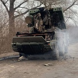 Уничтоженный российский грузовик предположительно УРАЛ 4320 возле н.п. Курдюмовка Донецкой области.