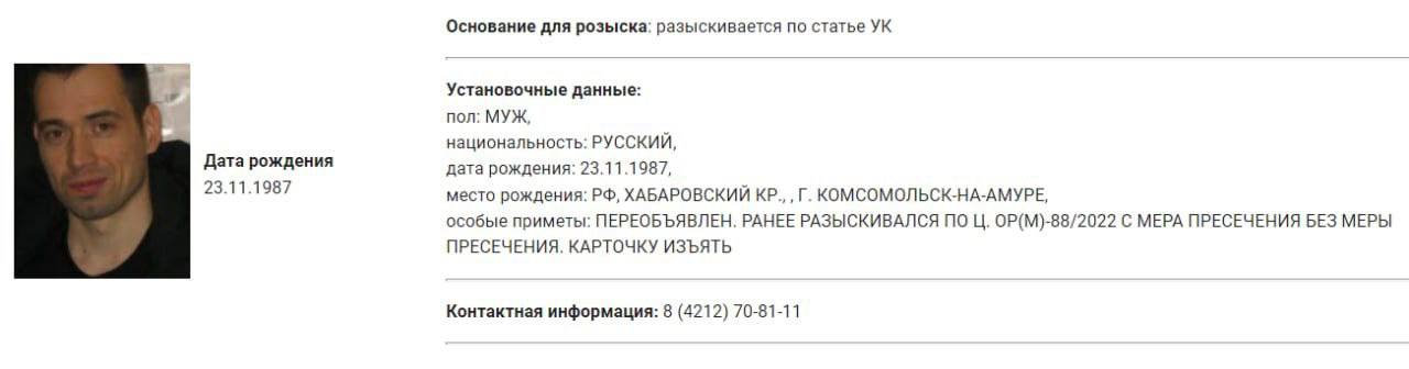 ⚡️Экс-координатора штаба Навального в Хабаровске Алексея Ворсина объявили в федеральный розыск