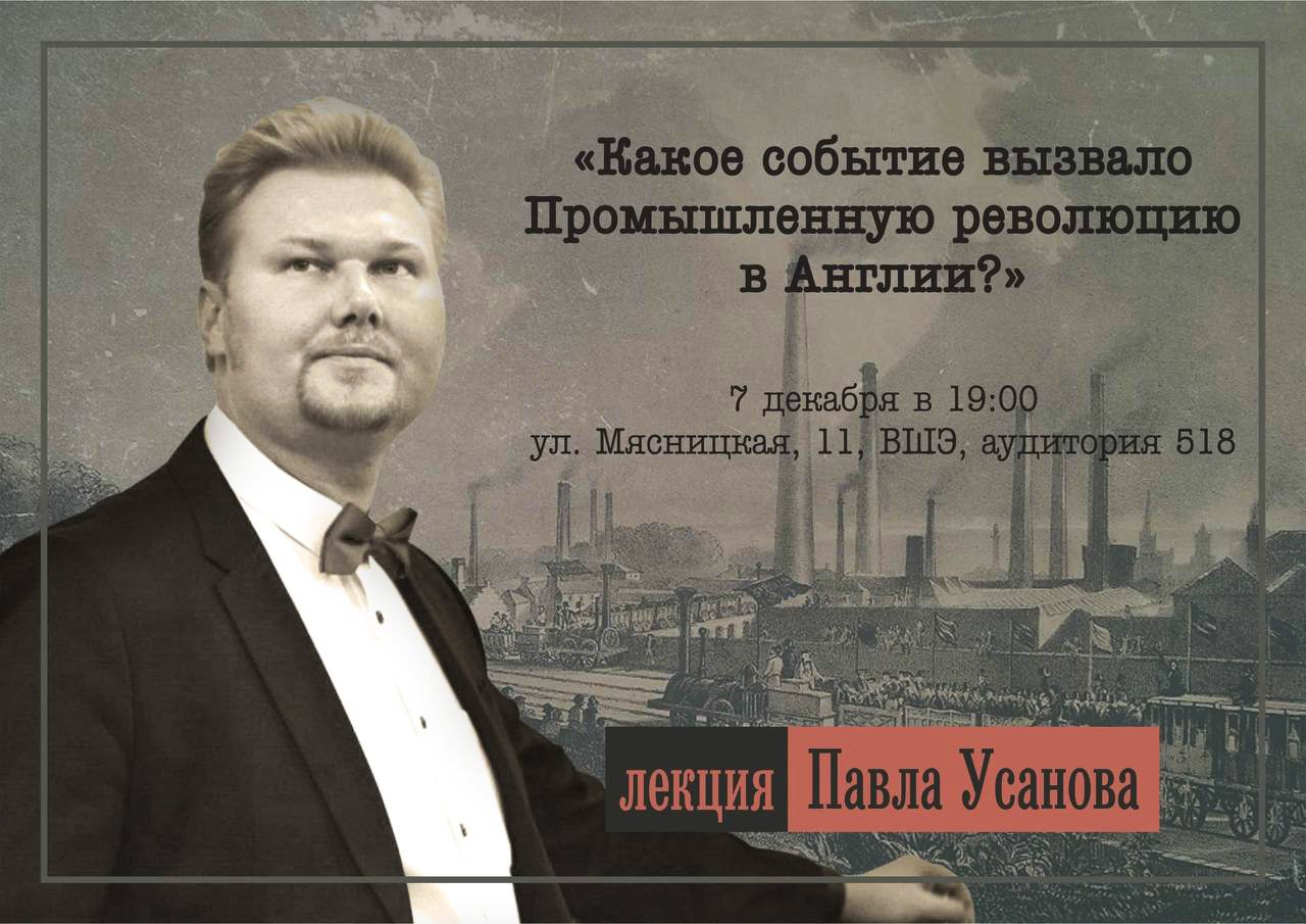 7 декабря в Москве состоится лекция Павла Усанова «Какое событие вызвало Промышленную революцию в Англии?».
