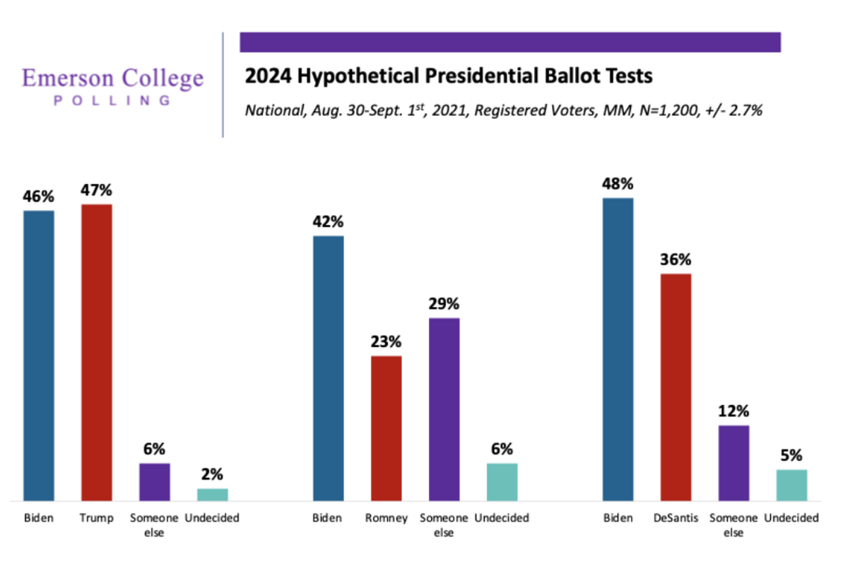 На фоне афганского фиаско, взлёта инфляции и миграционного кризиса рейтинги Байдена резко обвалились. Под 20% американцев хотели бы изменить свой голос и не выбирать Байдена. А в случае повторения поединка Трампа с Байденом действующий президент оказался бы позади.