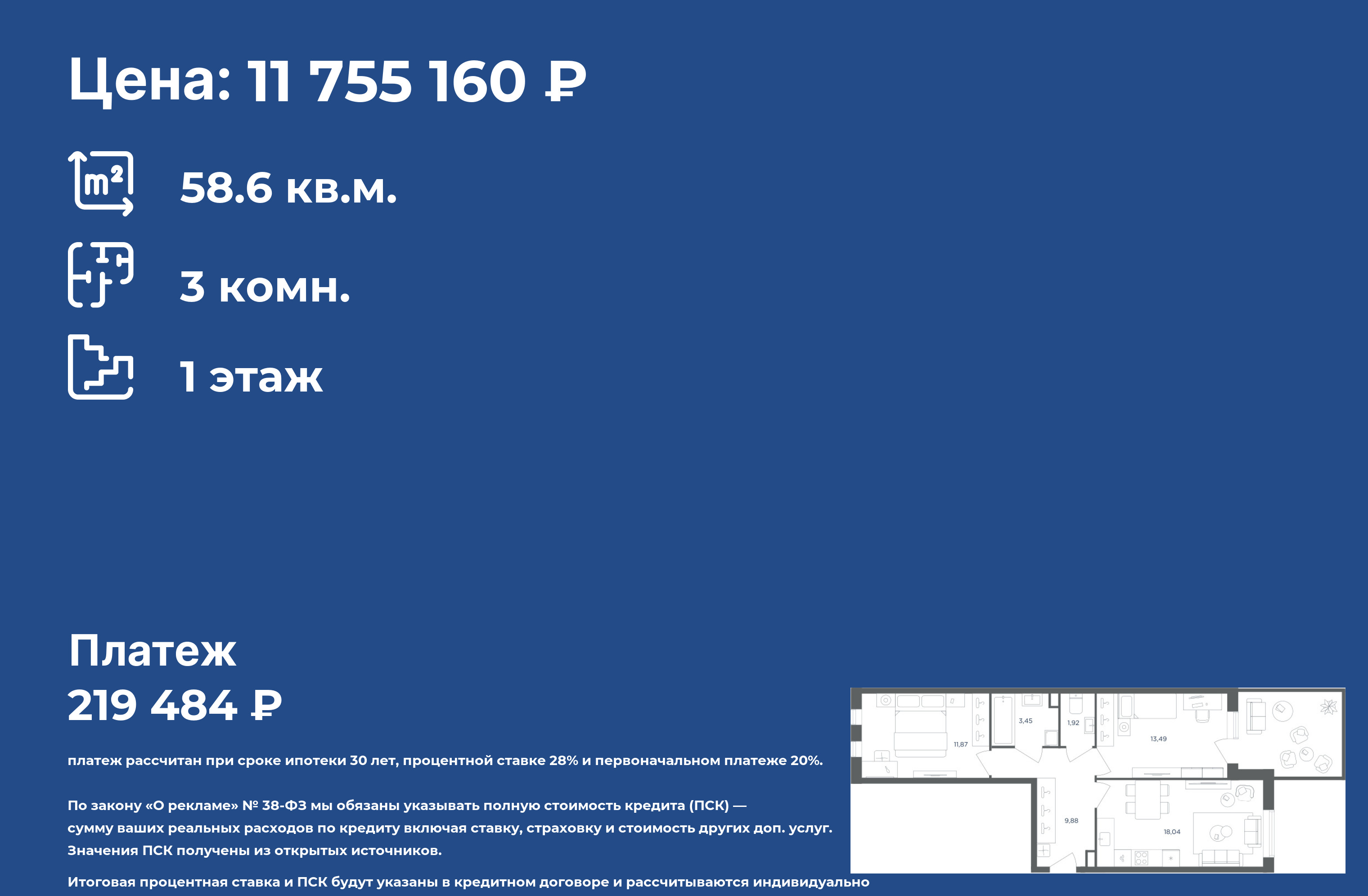 🔗 Продажа Жилая квартира за 9 554 707 ₽ по адресу , дом , корпус 4