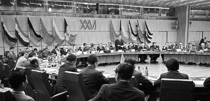 5 января 1949 года в Москве по инициативе СССР и РНР было созвано закрытое экономическое совещание (продлилось до 8 января) представителей правительств Албании, Болгарии, Венгрии, Польши, Румынии, СССР и Чехословакии, принявшее решение об образовании Совета экономической взаимопомощи, призванного способствовать установлению тесных экономических связей между Советским Союзом и странами новой демократии. Протокол о создании СЭВ был подписан в Москве 18 января 1949 года...